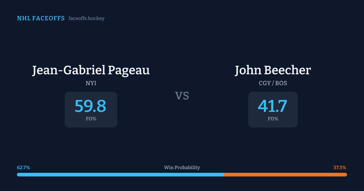 Jean-Gabriel Pageau vs John Beecher — Faceoff Head-to-Head