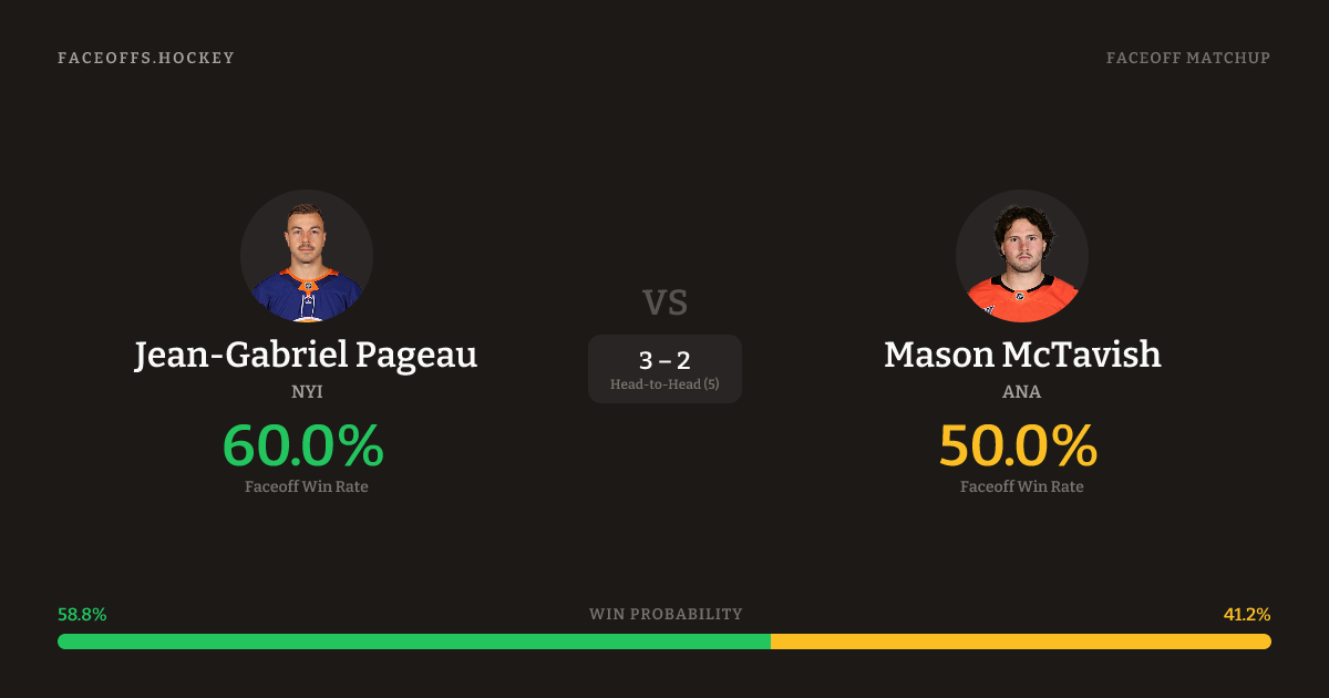 Jean-Gabriel Pageau vs Mason McTavish — Faceoff Head-to-Head