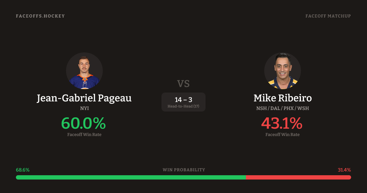 Jean-Gabriel Pageau vs Mike Ribeiro — Faceoff Head-to-Head