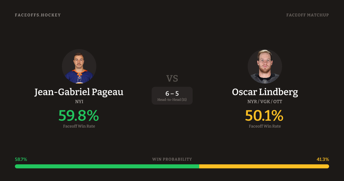 Jean-Gabriel Pageau vs Oscar Lindberg — Faceoff Head-to-Head