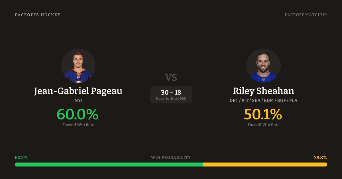 Jean-Gabriel Pageau vs Riley Sheahan — Faceoff Head-to-Head