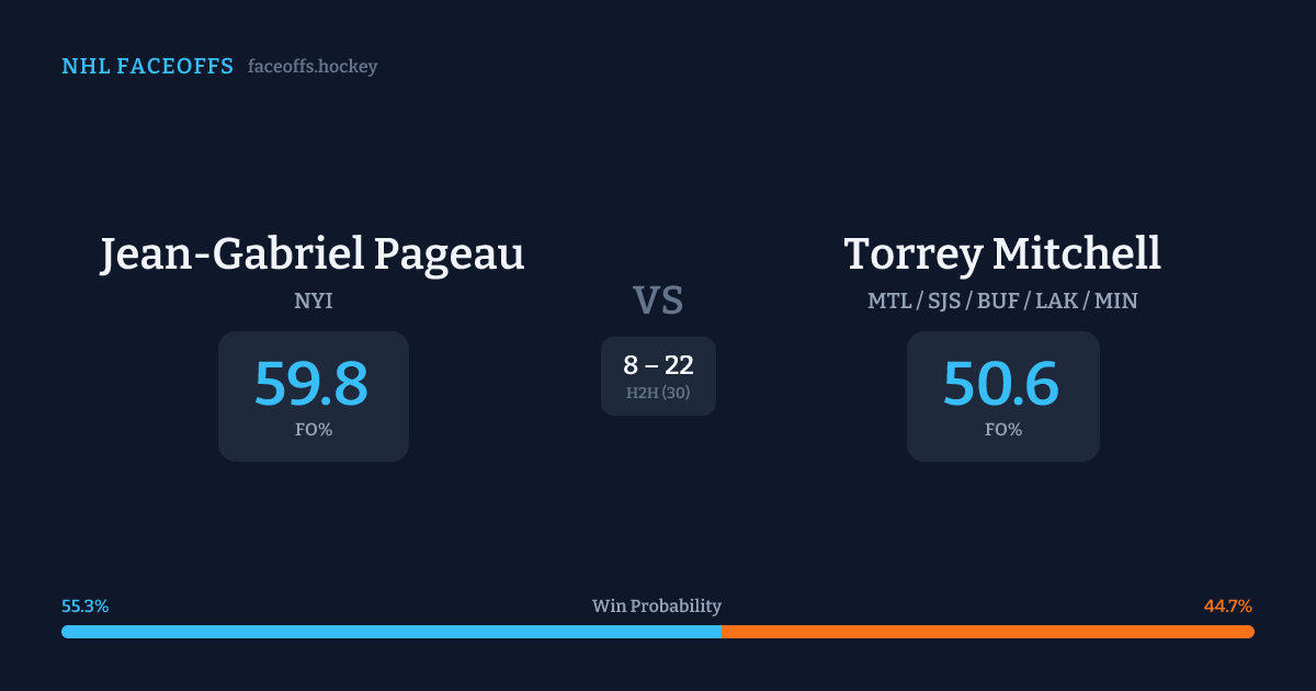 Jean-Gabriel Pageau vs Torrey Mitchell — Faceoff Head-to-Head