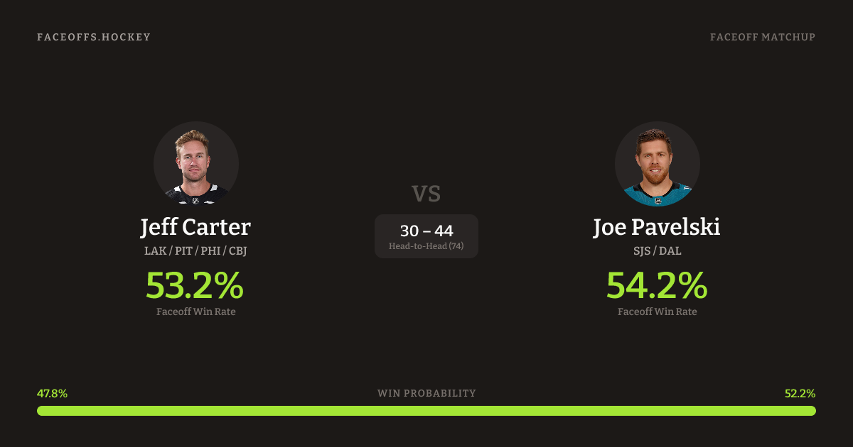 Jeff Carter vs Joe Pavelski — Faceoff Head-to-Head
