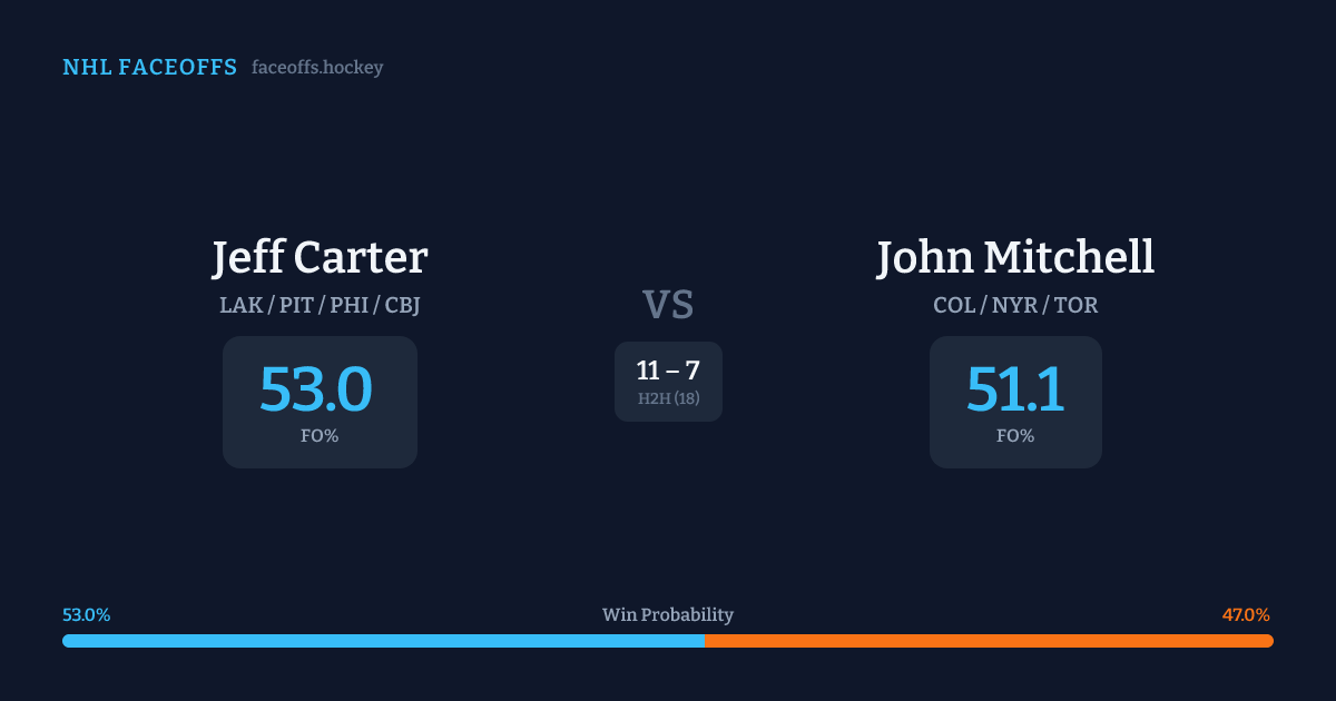Jeff Carter vs John Mitchell — Faceoff Head-to-Head