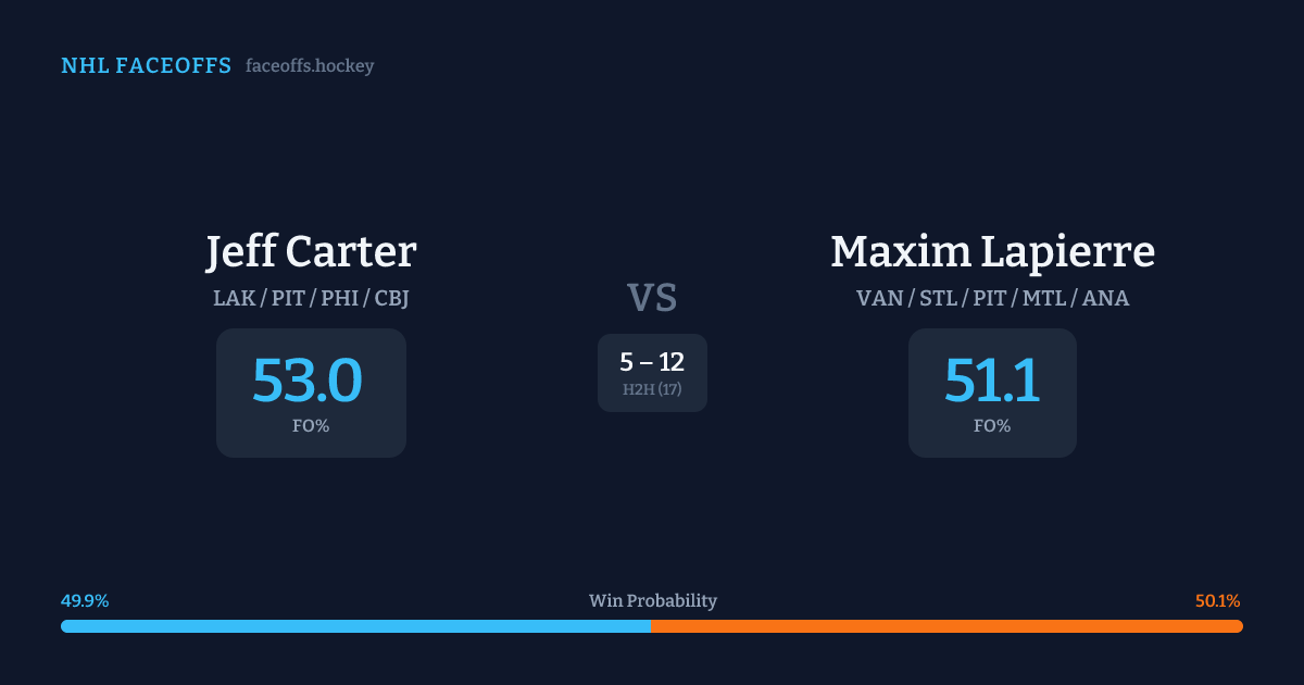 Jeff Carter vs Maxim Lapierre — Faceoff Head-to-Head