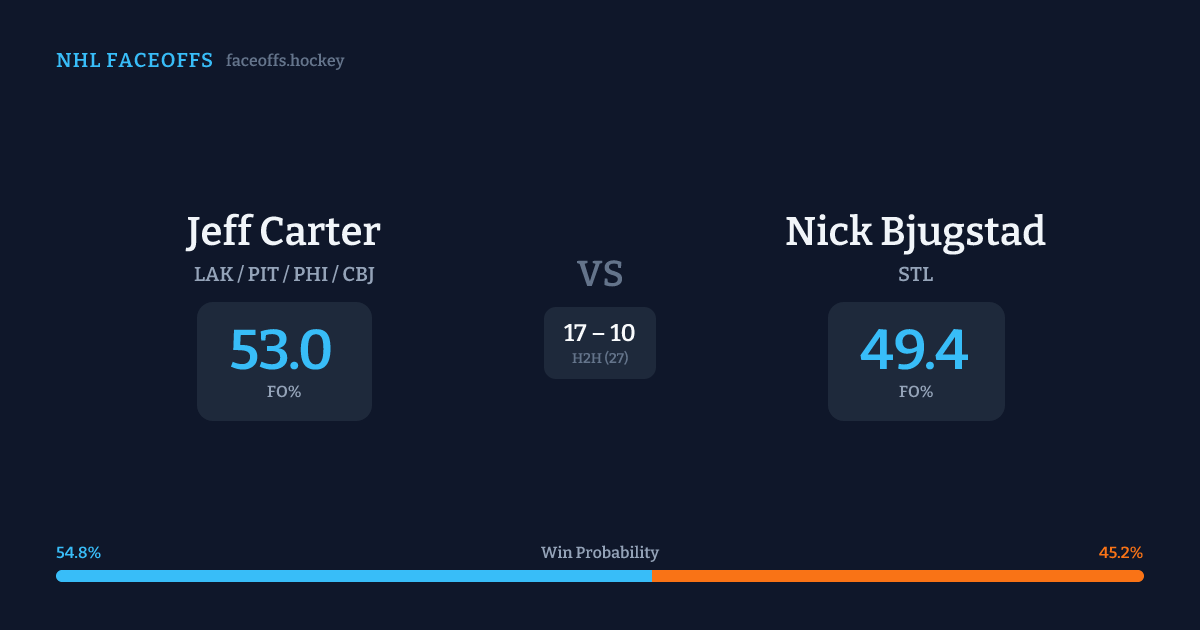 Jeff Carter vs Nick Bjugstad — Faceoff Head-to-Head