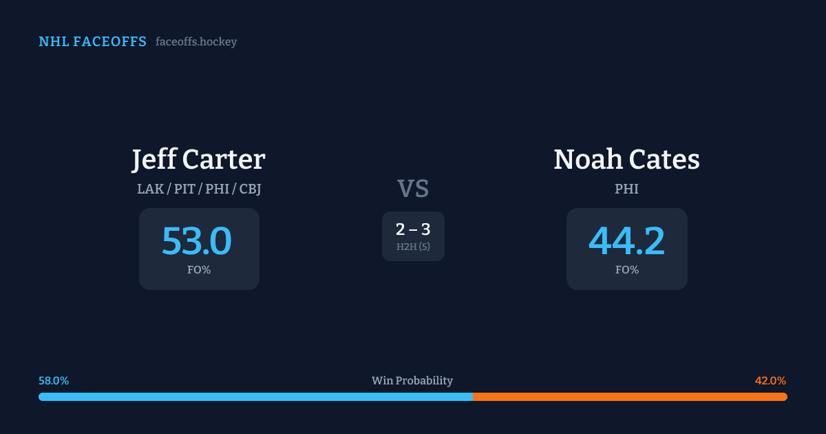 Jeff Carter vs Noah Cates — Faceoff Head-to-Head