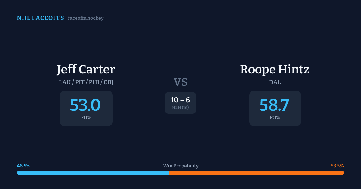 Jeff Carter vs Roope Hintz — Faceoff Head-to-Head
