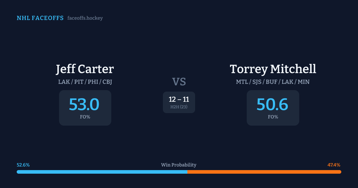 Jeff Carter vs Torrey Mitchell — Faceoff Head-to-Head