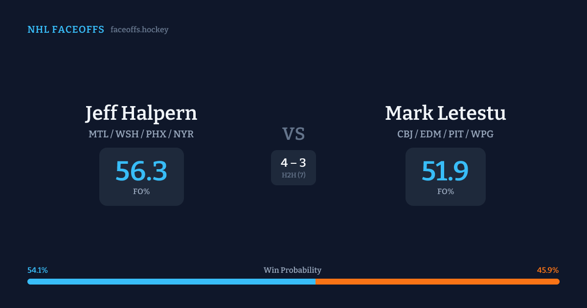 Jeff Halpern vs Mark Letestu — Faceoff Head-to-Head