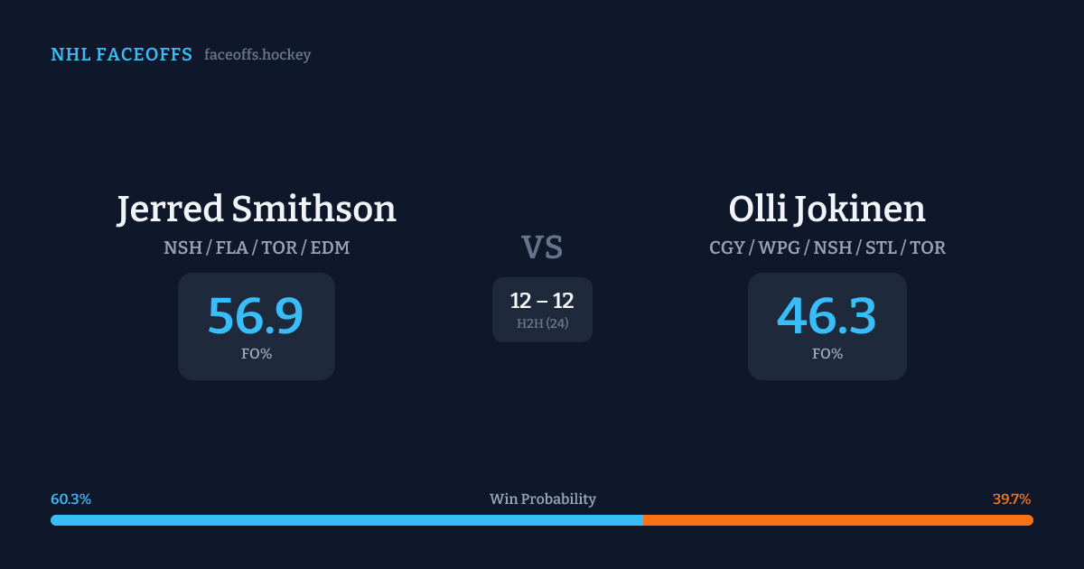 Jerred Smithson vs Olli Jokinen — Faceoff Head-to-Head