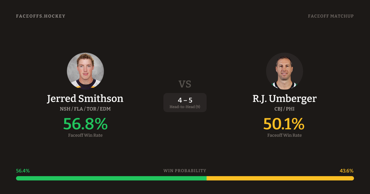 Jerred Smithson vs R.J. Umberger — Faceoff Head-to-Head