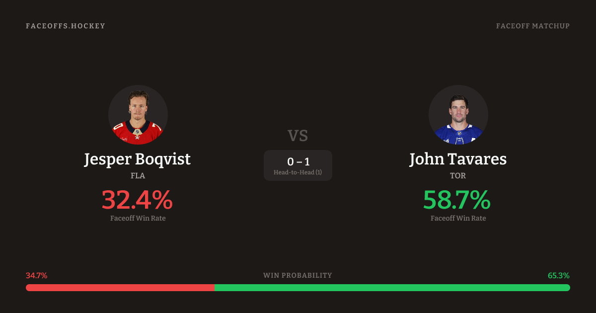 Jesper Boqvist vs John Tavares — Faceoff Head-to-Head