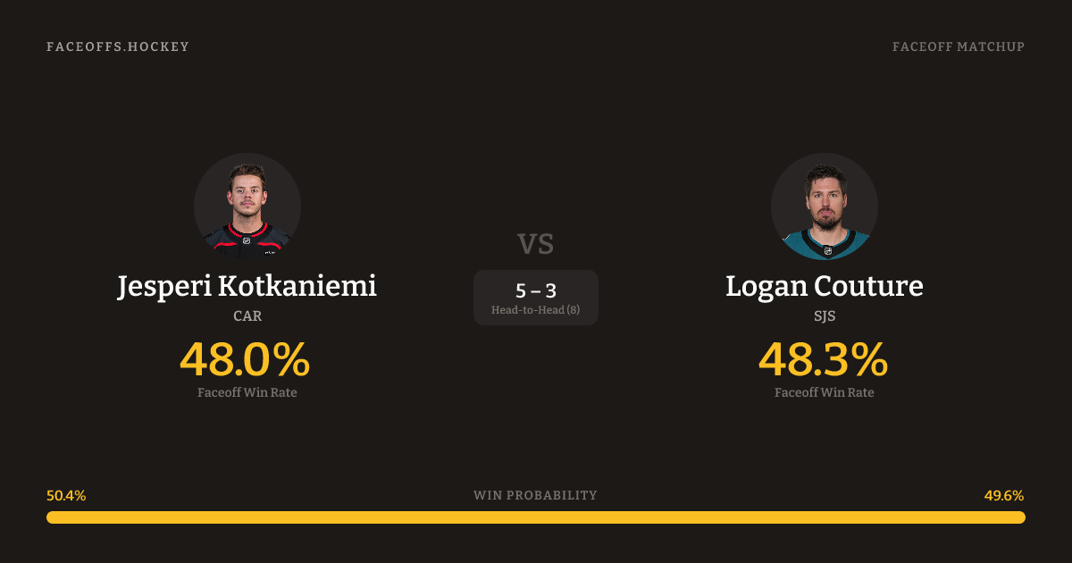 Jesperi Kotkaniemi vs Logan Couture — Faceoff Head-to-Head