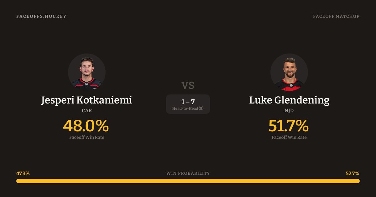 Jesperi Kotkaniemi vs Luke Glendening — Faceoff Head-to-Head