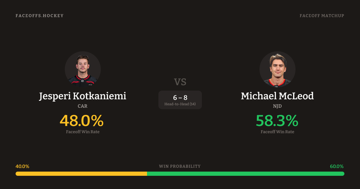 Jesperi Kotkaniemi vs Michael McLeod — Faceoff Head-to-Head