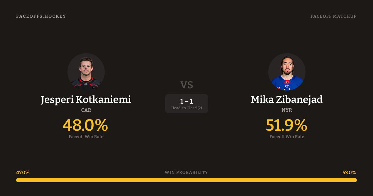 Jesperi Kotkaniemi vs Mika Zibanejad — Faceoff Head-to-Head