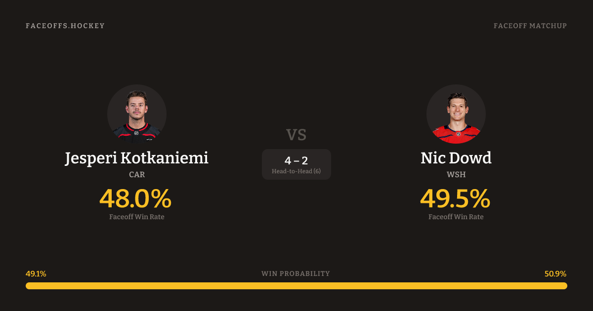 Jesperi Kotkaniemi vs Nic Dowd — Faceoff Head-to-Head