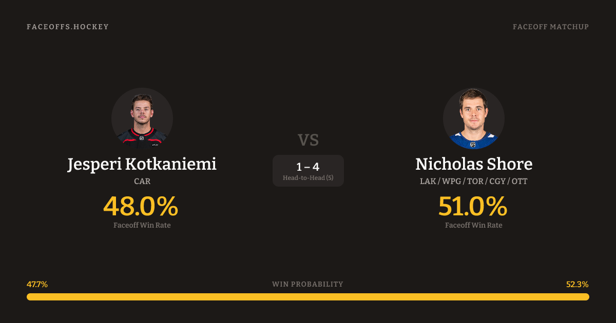 Jesperi Kotkaniemi vs Nicholas Shore — Faceoff Head-to-Head
