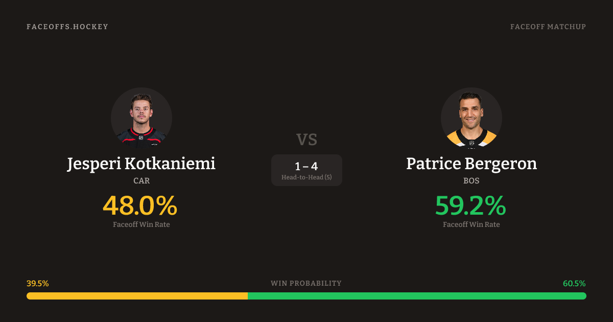 Jesperi Kotkaniemi vs Patrice Bergeron — Faceoff Head-to-Head