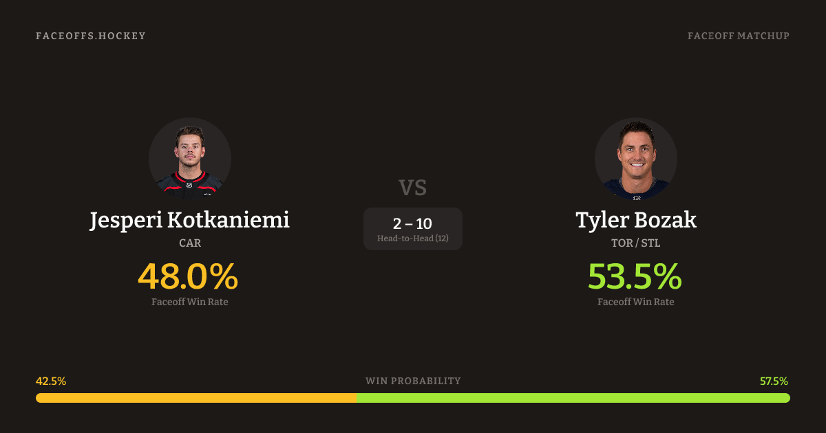 Jesperi Kotkaniemi vs Tyler Bozak — Faceoff Head-to-Head