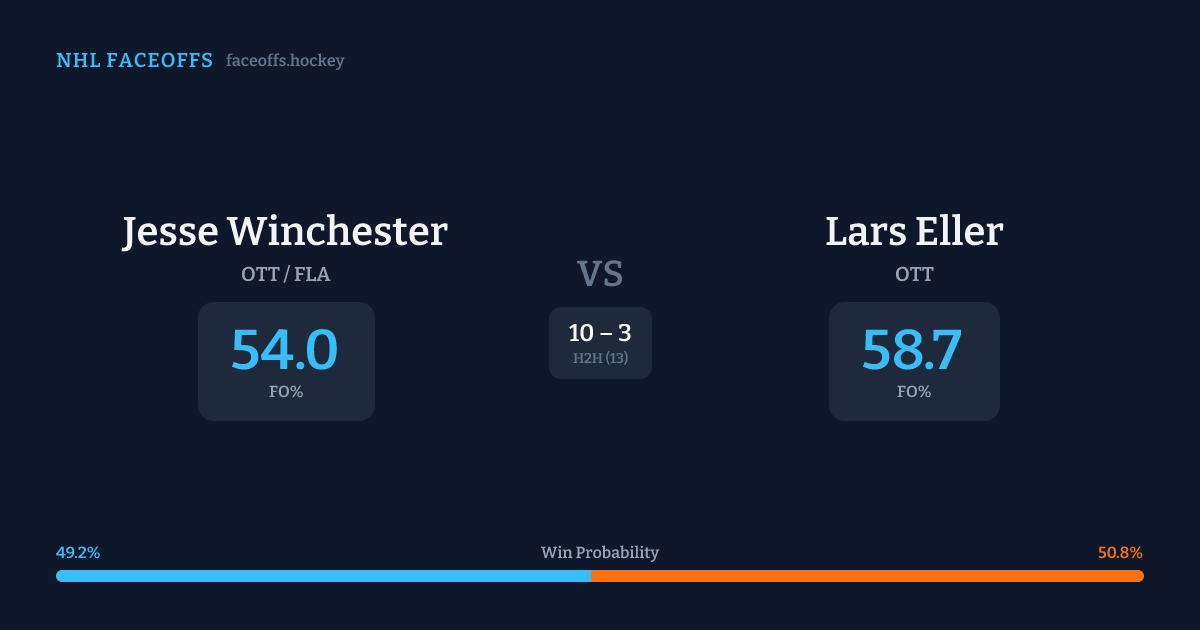 Jesse Winchester vs Lars Eller — Faceoff Head-to-Head