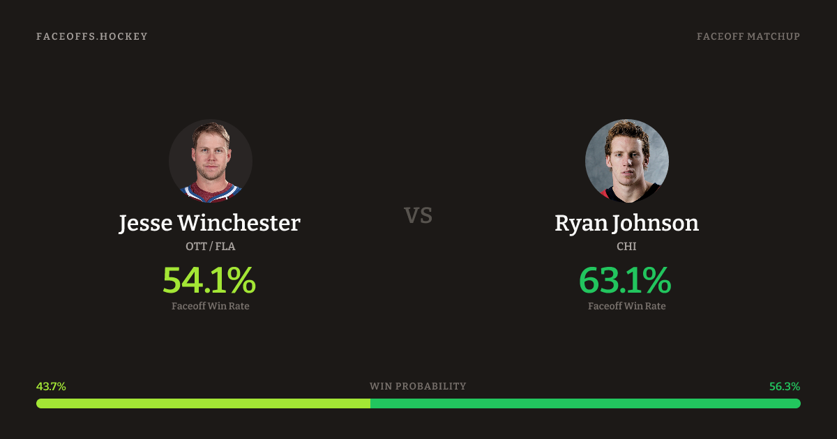 Jesse Winchester vs Ryan Johnson — Faceoff Head-to-Head