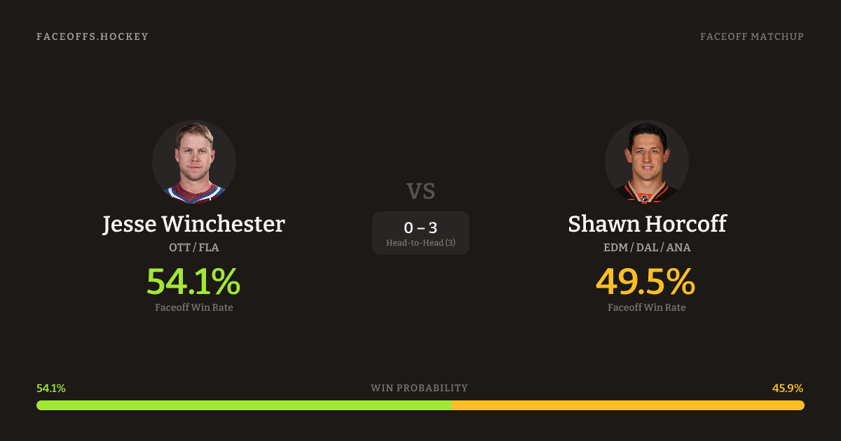Winchester shoots right. Horcoff is 51.2% vs right-shot opponents (1,303).