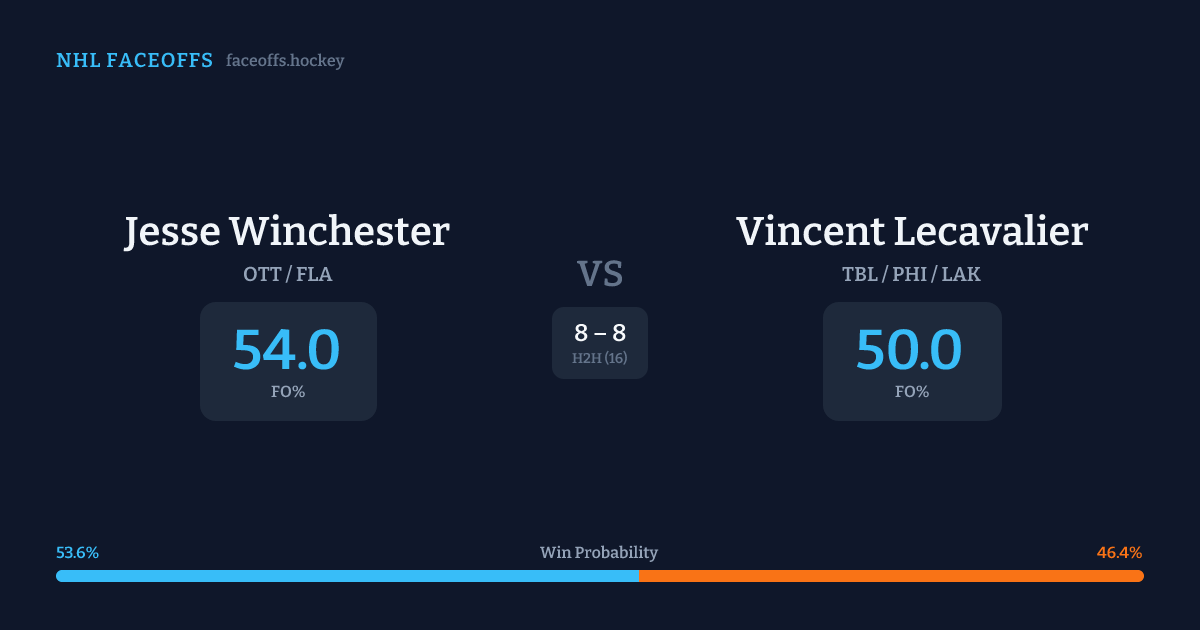 Jesse Winchester vs Vincent Lecavalier — Faceoff Head-to-Head