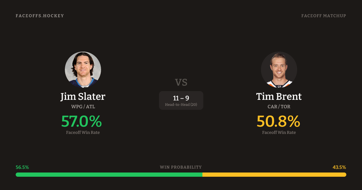Jim Slater vs Tim Brent — Faceoff Head-to-Head