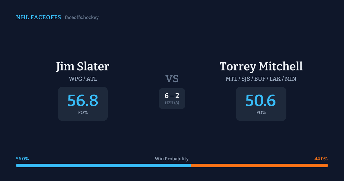 Jim Slater vs Torrey Mitchell — Faceoff Head-to-Head