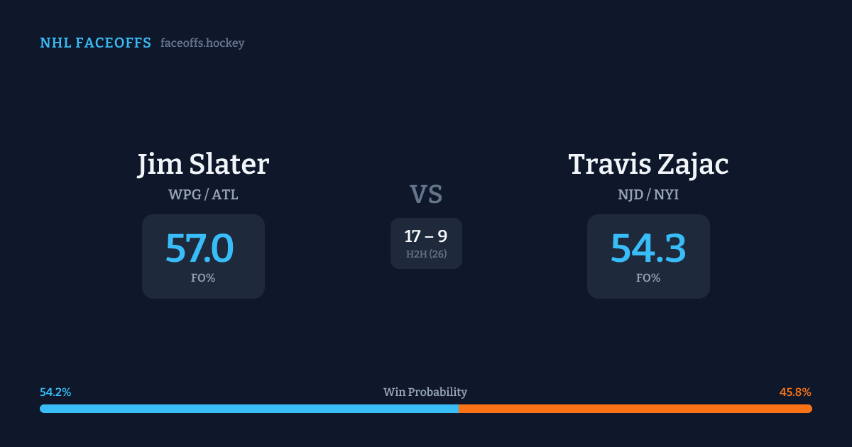 Jim Slater vs Travis Zajac — Faceoff Head-to-Head