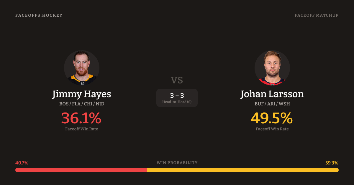 Jimmy Hayes vs Johan Larsson — Faceoff Head-to-Head