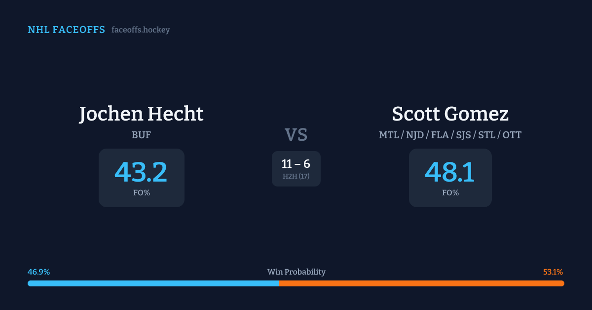 Jochen Hecht vs Scott Gomez — Faceoff Head-to-Head