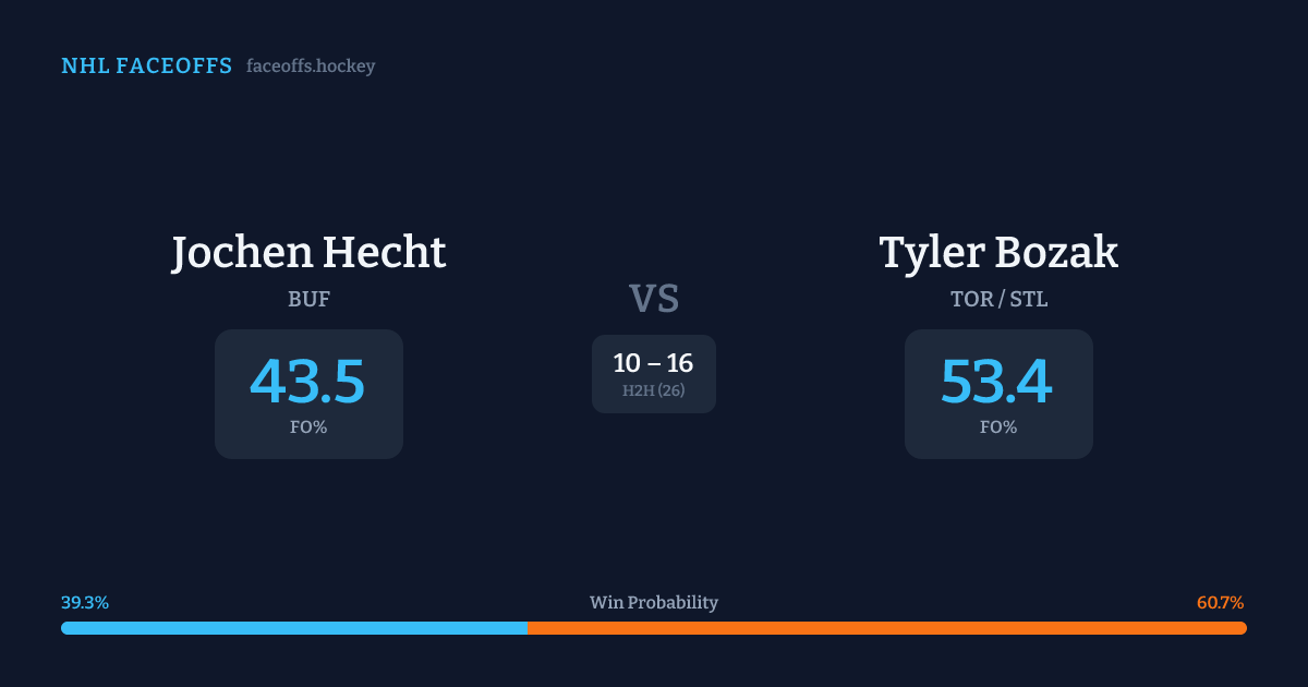 Jochen Hecht vs Tyler Bozak — Faceoff Head-to-Head