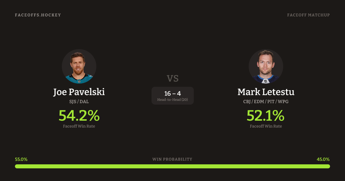 Joe Pavelski vs Mark Letestu — Faceoff Head-to-Head