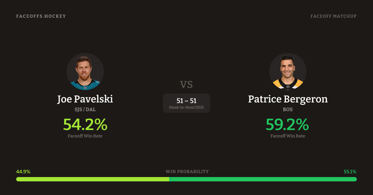 Joe Pavelski vs Patrice Bergeron — Faceoff Head-to-Head