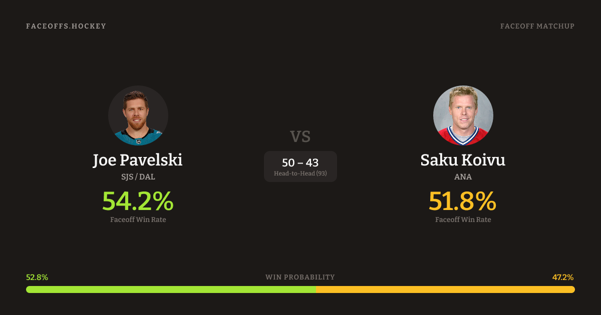 Joe Pavelski vs Saku Koivu — Faceoff Head-to-Head