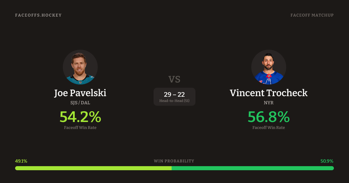 Joe Pavelski vs Vincent Trocheck — Faceoff Head-to-Head