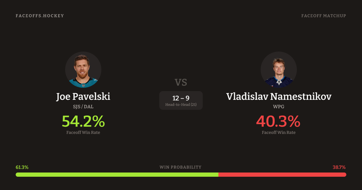 Joe Pavelski vs Vladislav Namestnikov — Faceoff Head-to-Head