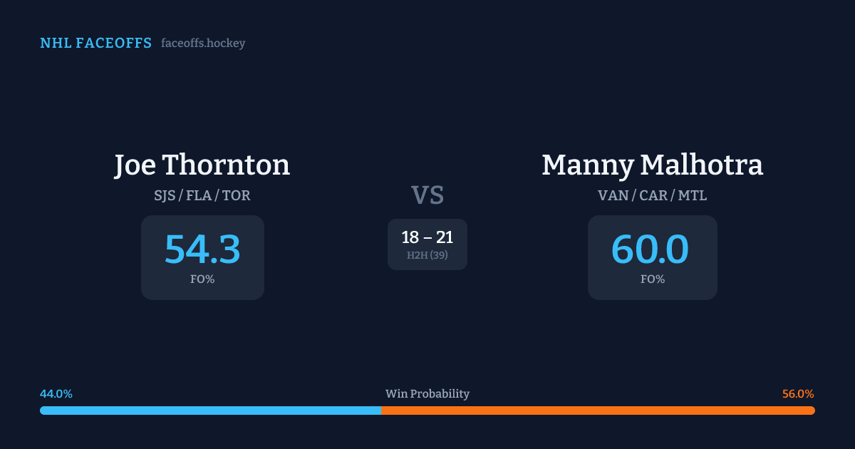 Joe Thornton vs Manny Malhotra — Faceoff Head-to-Head