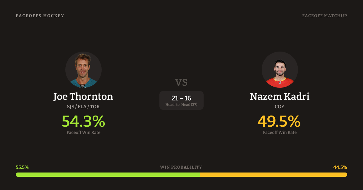 Joe Thornton vs Nazem Kadri — Faceoff Head-to-Head