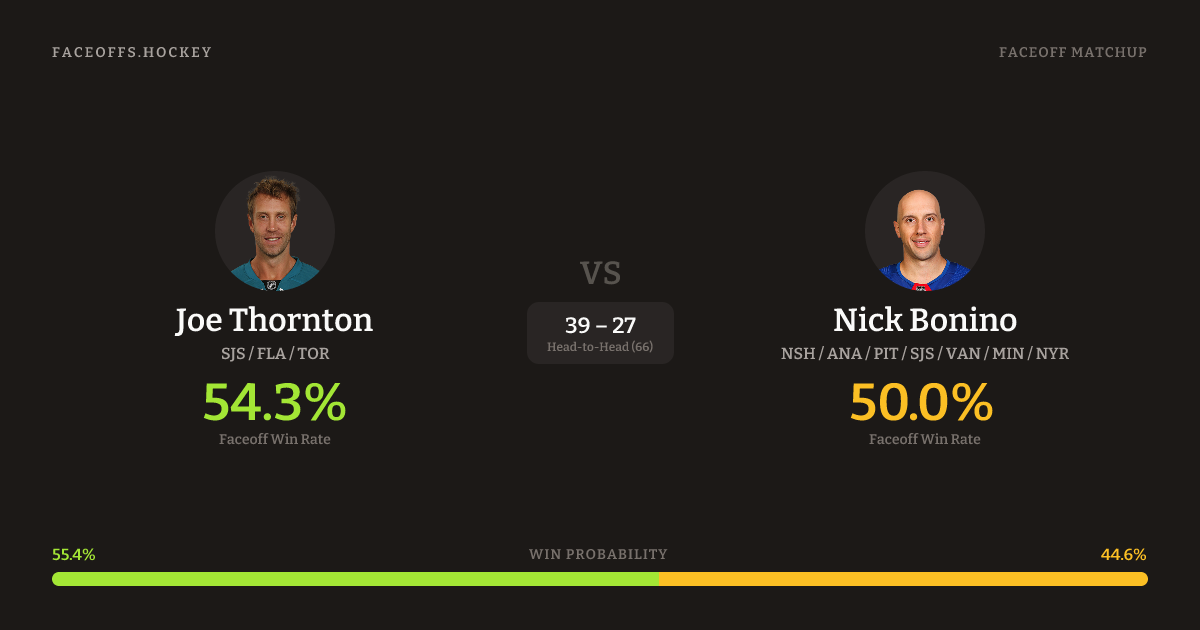 Joe Thornton vs Nick Bonino — Faceoff Head-to-Head