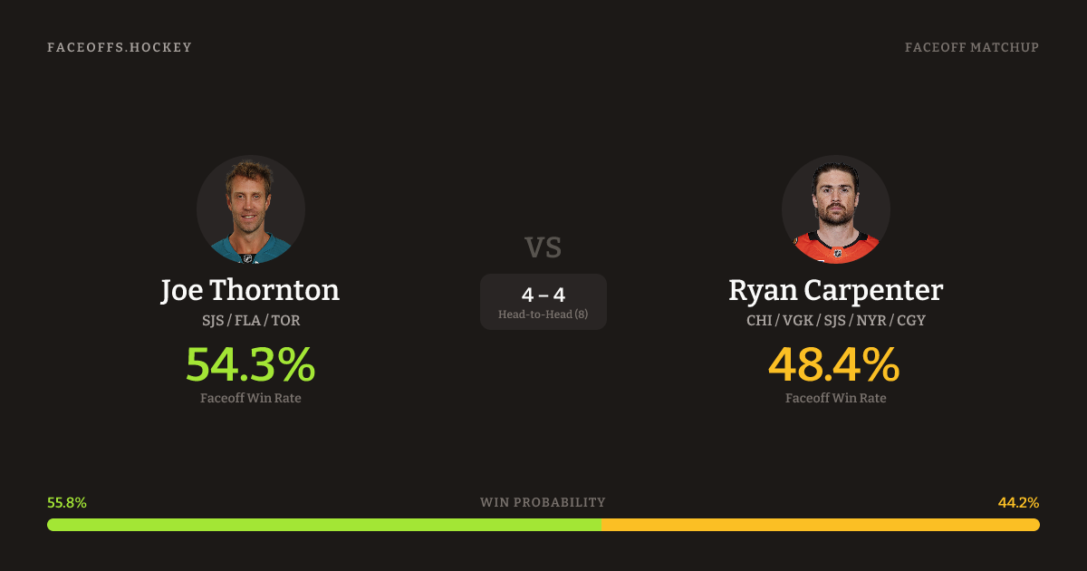 Joe Thornton vs Ryan Carpenter — Faceoff Head-to-Head