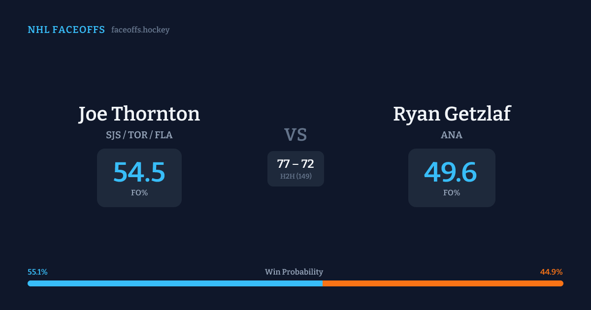 Joe Thornton vs Ryan Getzlaf — Faceoff Head-to-Head