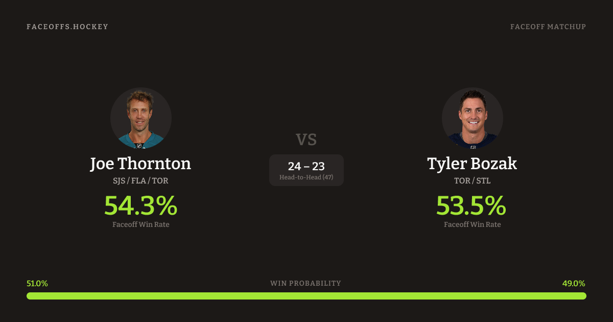 Joe Thornton vs Tyler Bozak — Faceoff Head-to-Head