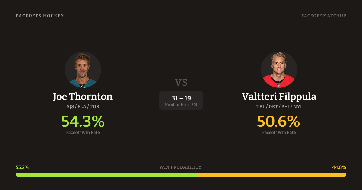 Joe Thornton vs Valtteri Filppula — Faceoff Head-to-Head