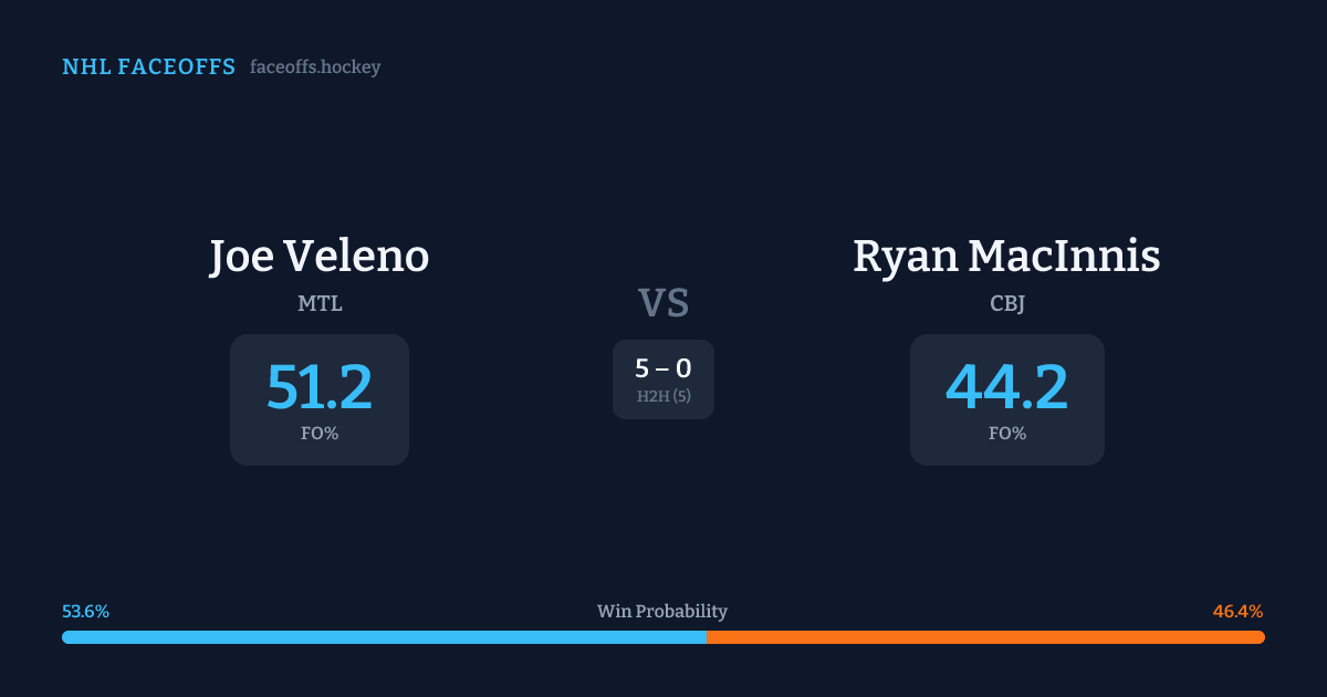 Joe Veleno vs Ryan MacInnis — Faceoff Head-to-Head