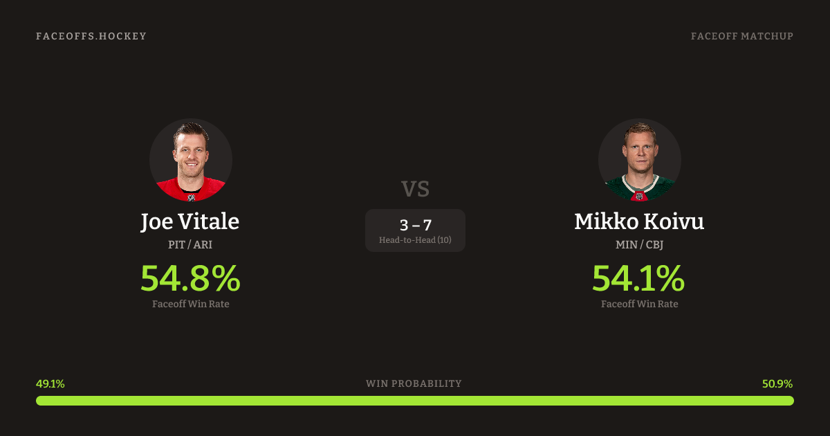 Joe Vitale vs Mikko Koivu — Faceoff Head-to-Head