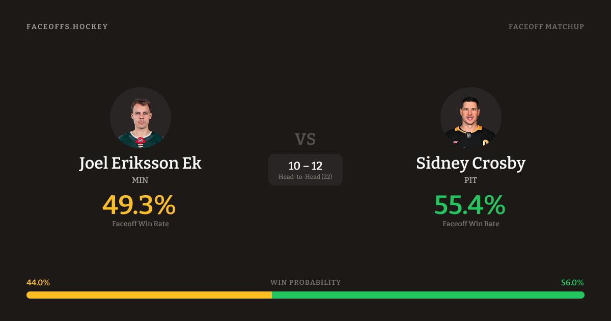 Joel Eriksson Ek vs Sidney Crosby — Faceoff Head-to-Head